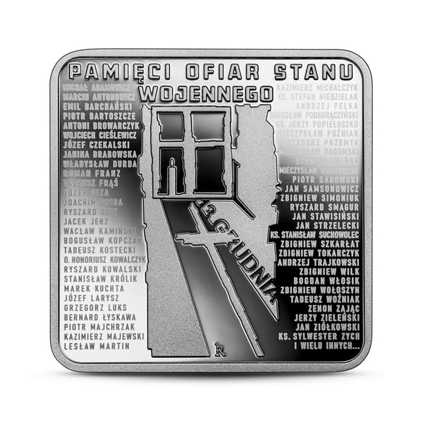 9. grudnia 2021 roku Narodowy Bank Polski wprowadził do obiegu srebrną monetę o nominale 10 zł: Pamięci ofiar stanu wojennego.