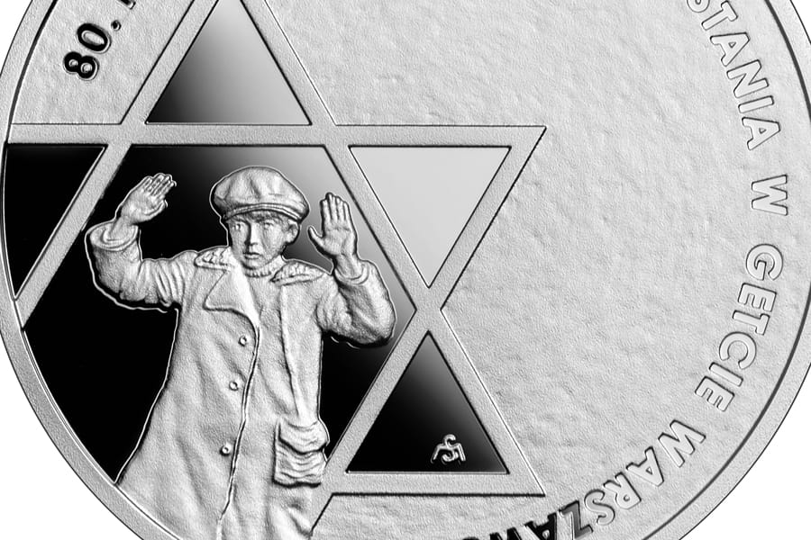 Moneta srebrna: 10 zł / 2023 r. - 80. rocznica wybuchu powstania w getcie warszawskim.