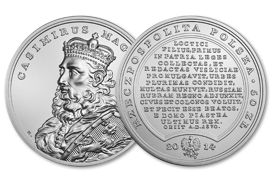 Moneta srebrna: 50 zł / 2014 r. z serii "Skarby Stanisława Augusta" - Kazimierz Wielki (1333-1370).
