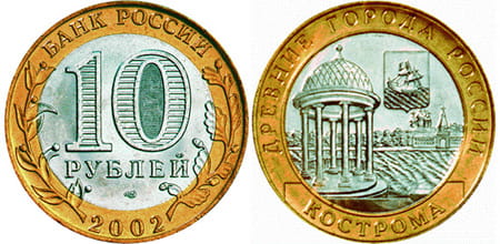 Rosja: 10 rubli / 2002 r. - Starożytne Miasta Rosji - Kostroma.
