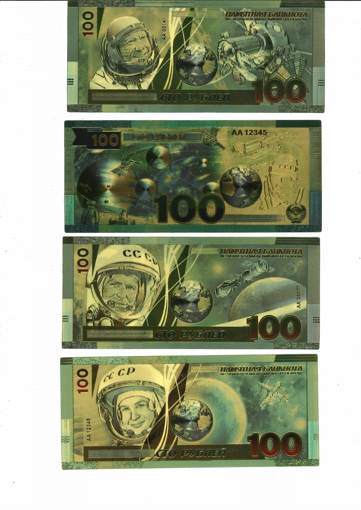 Promocje:Zestaw 4 banknotów 100 Rubli ASTRONAUCI