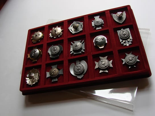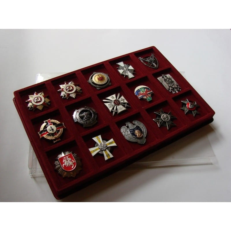 Uniwersalna paletka z zasówką na 15 odznak pułkowych, gwiazd radzieckich.